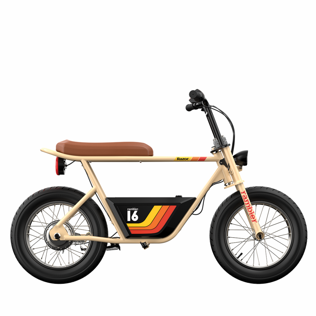 Give your teen their first set of wheels and a taste of independence with the Razor Rambler 16. It might not be a car, but this e-bike, with its cool retro look and modernised features, will get your teen out and get fresh air. The Rambler 16 isn't just all looks, though; if you take a close look, it's got some pretty impressive features. With the Rambler, your teen will be making a statement and have the power to back it up.